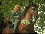 Tres sangres, Dreiblut.. iberisches Arbeitspferd von Andrea. Das erste Mal dabei und gleich die Hauptrolle! Als Pferd der Königin muß sie trotzdem alle Turnierdisziplinen meistern.