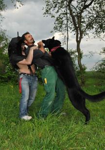 schwarzer Schäferhund von Nina. Ist kein bißchen böse, muß in dem Stück aber den bösen Begleiter der Wolfskönigin spielen.
